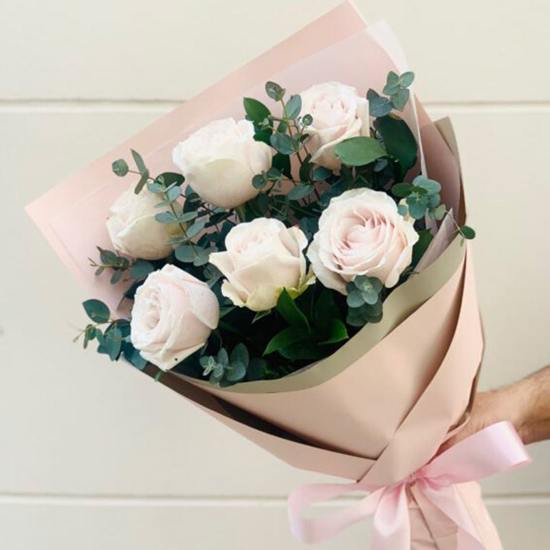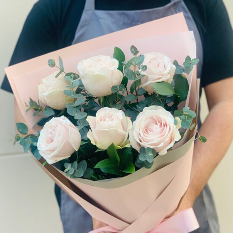 Prepare for festivals of happiness with precious bouquet. A fresh 5 pink roses are arranged in hand tie style. Start a good day with delightful and glamorous flowers.
